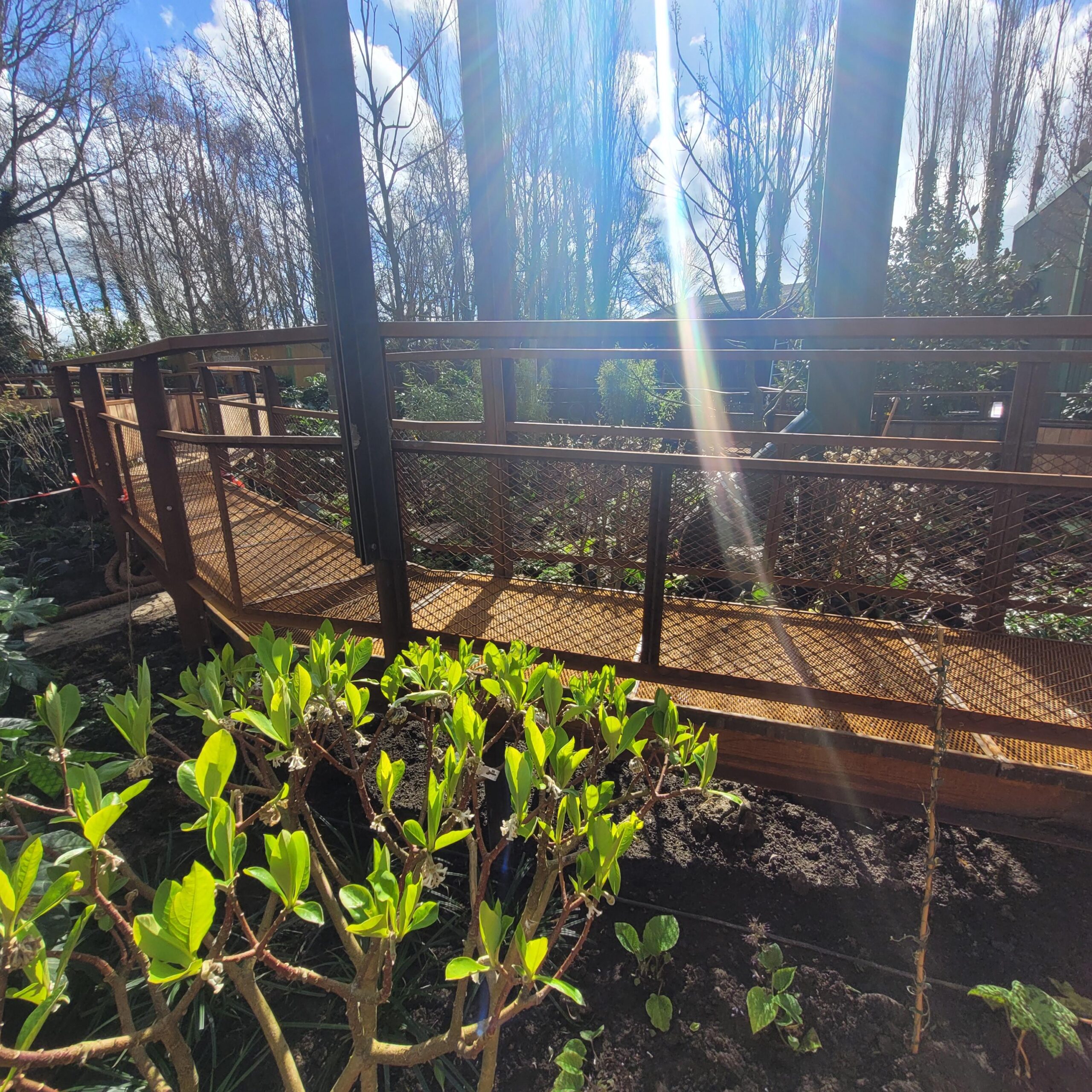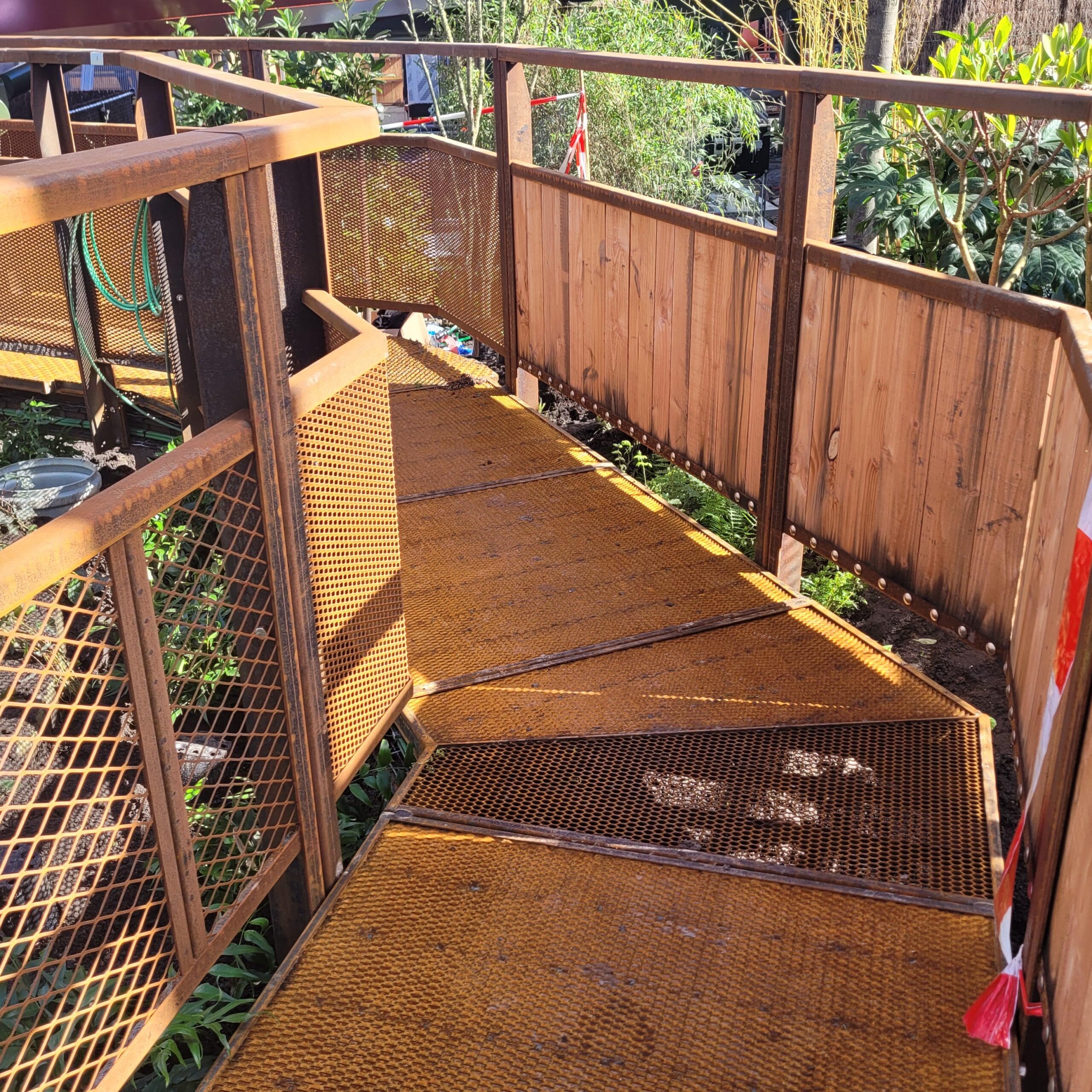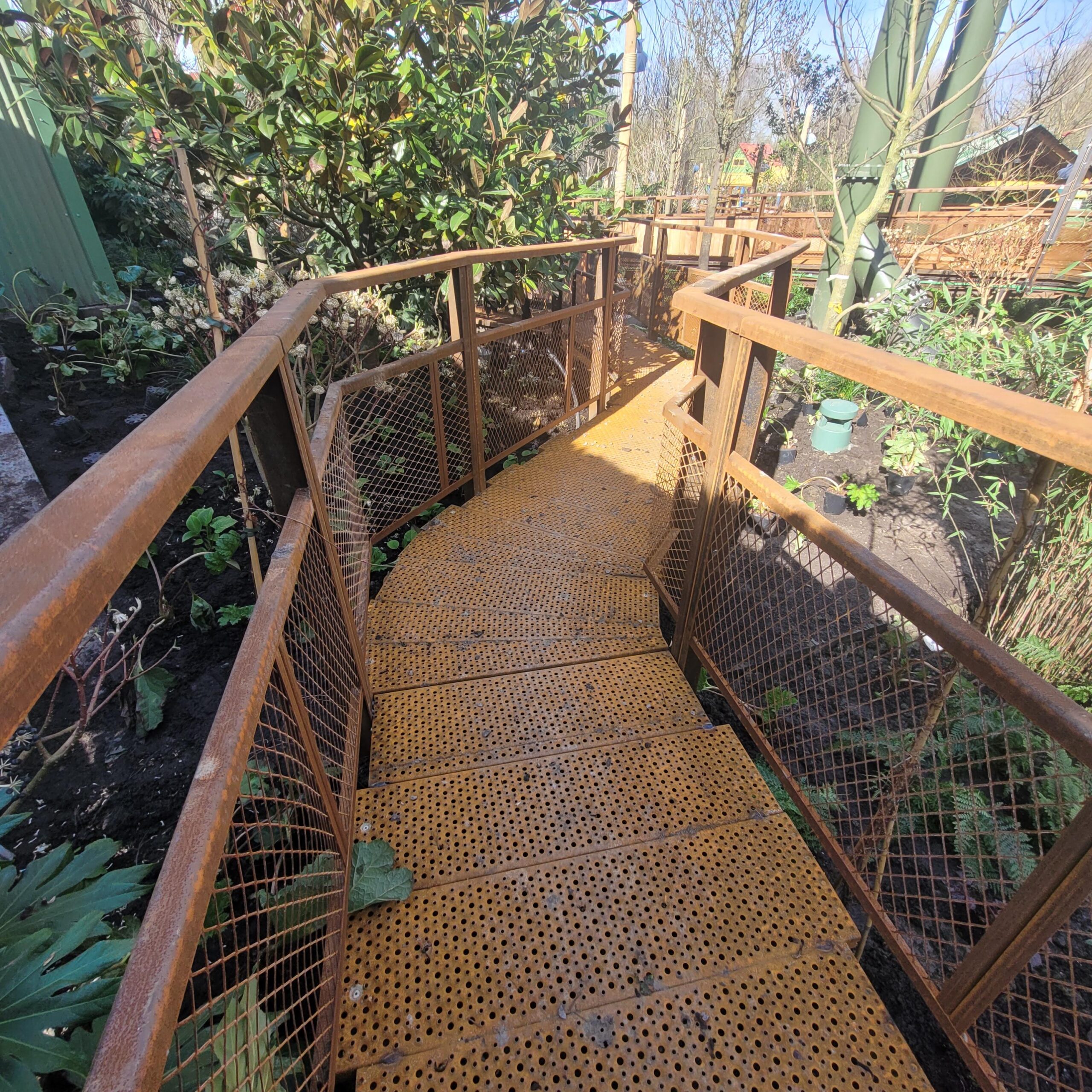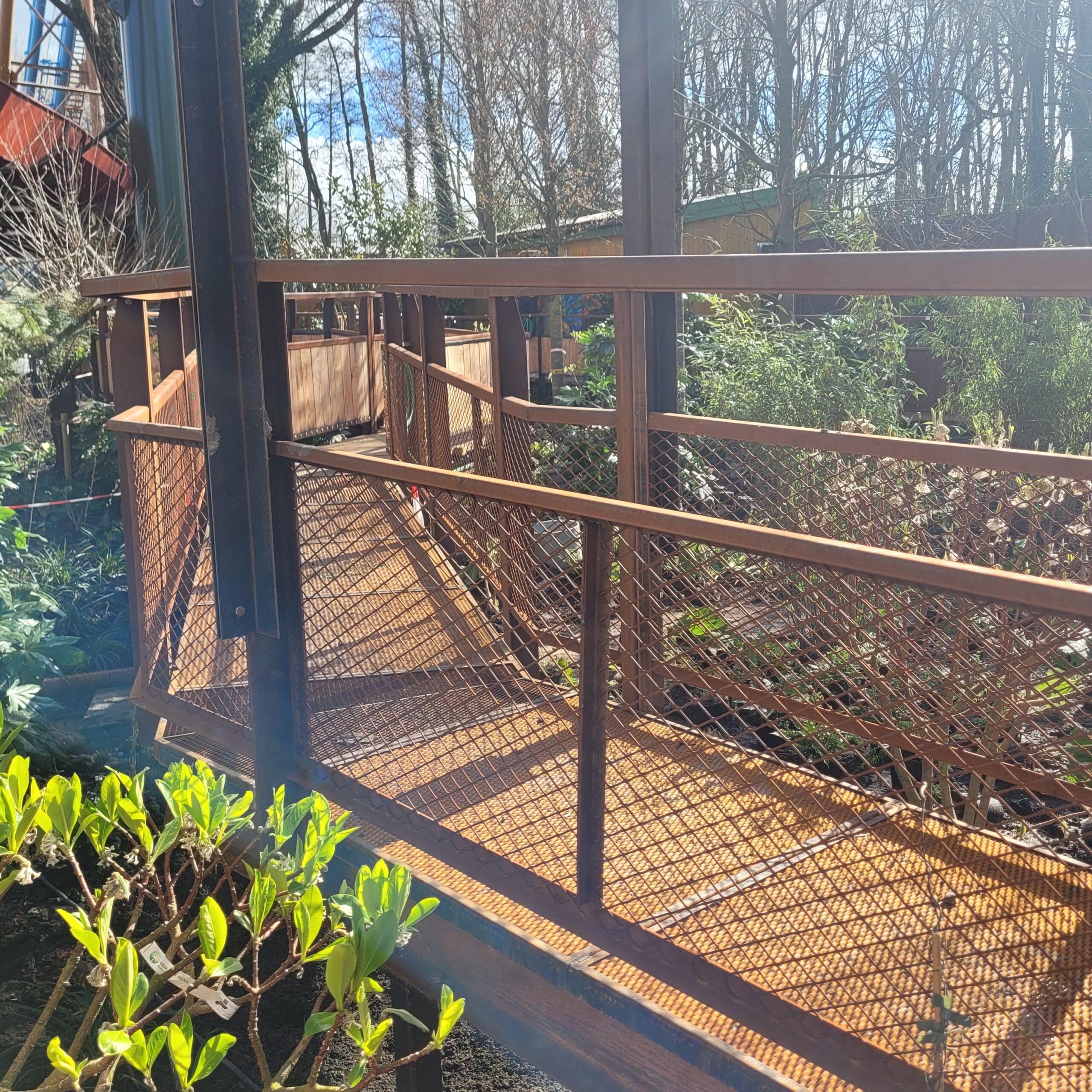 Garde-corps et planchers métalliques réalisés à partir de métal déployé 30.13.46.20 AC, A 62.34.30.20 et profil Formstep en acier corten.